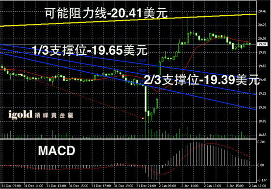 今日摘要:贵金属市场今天开盘后,多头大幅反击,金银价格在此前的低位持稳后进一步反弹。国际金价从1205美元反弹至1223美元附近震荡,最高时触及1228美元/盎司;国际银价则从19.5美元反弹至20美元附近震荡,最高价格录得20.43美元/盎司。美元指数今天开盘后,也从80.1上行至80.3附近。总体上,金银价格在新的一年里展示了多头集聚的信号,可能预示着未来进一步持稳。