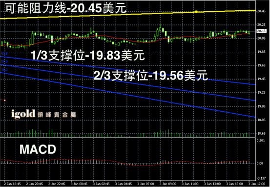 白银阴阳烛录得柱体收短,且聚焦明显,整体处于红色日平均移动线中位,短线MACD显示呈中性,后期白银价格或在20.2美元附近窄幅整理。