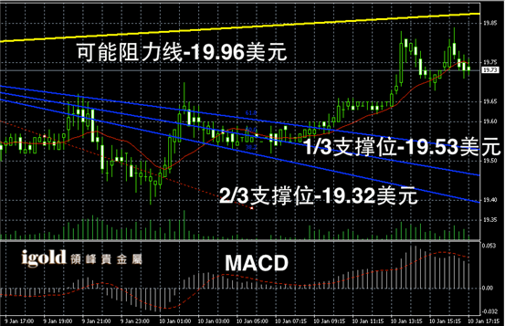 白银阴阳烛录得小幅回升,阳烛录得增多,短线MACD显示弱势多头主导,整体柱体录得高于红色日平均移动线,短线白银价格或在19.6美元附近整理震荡。