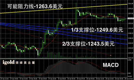 黄金阴阳烛录得柱体较短,且整体处于红色日平均移动线中位,短线MACD显示处于弱势多头回落,后期黄金价格或在1250 – 1260 美元区间进行波段震荡。