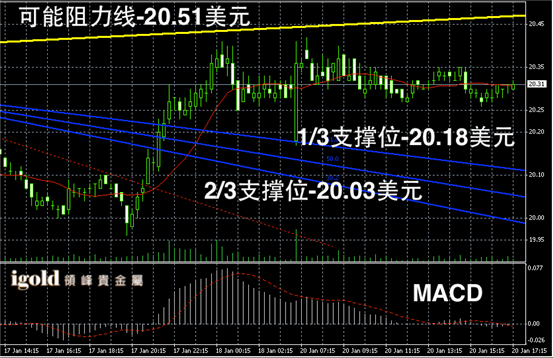白银阴阳烛录得录得前后阴阳烛间隔出现,整体处于红色日平均移动线中位,短线MACD显示呈中性,后期白银价格或在20.3附近窄幅整理。