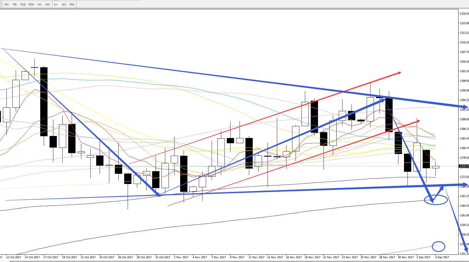 空单布局区间:1277-1281,短线止损位1285,波段最大止损位1289.5。