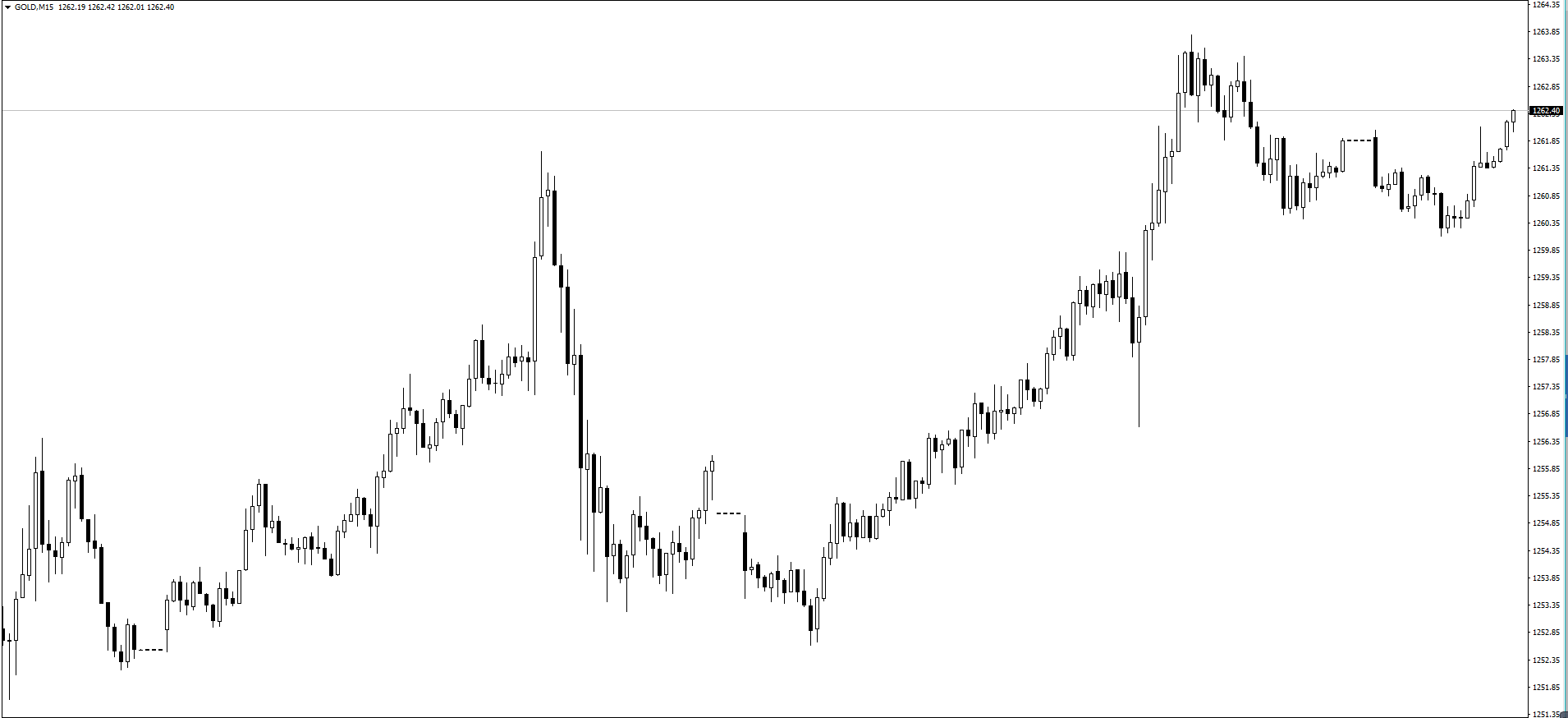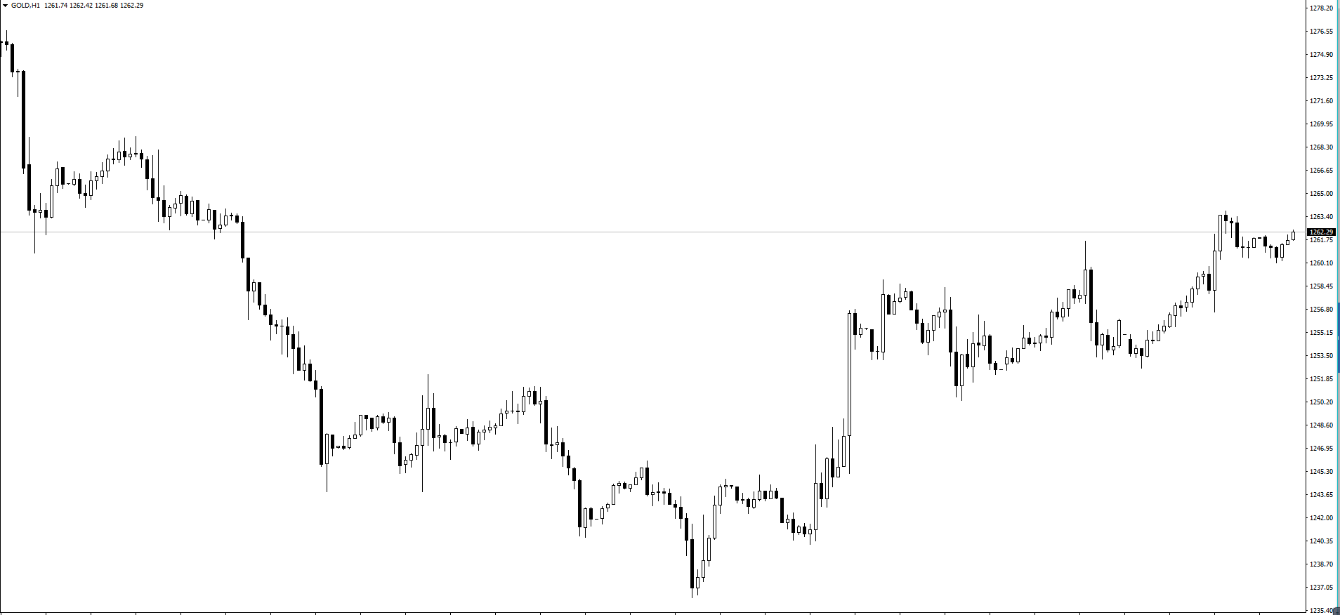 【黄金1小时】上图是黄金1小时走势示例图,可以看到昨日黄金再次走出一波上涨,创出了新高点,最高涨到了1263.7美元附近位置,日线收出一根大阳线。那么昨日评论中建议的黄金1256一线做多的操作策略符合行情走势,并且已经达到了给出的目标位置附近。对于今日行情走势,从技术层面可以看到黄金当前涨势力度较强,没有任何预示回落的迹象,那么思路上就继续看多做多跟进多,预计短时间很难回调,将直接上行的概率较大。由于今日凌晨将有税改议案投票以及美联储票委卡什卡利讲话,必将大幅影响行情,不排除暴涨的走势,需重点关注。