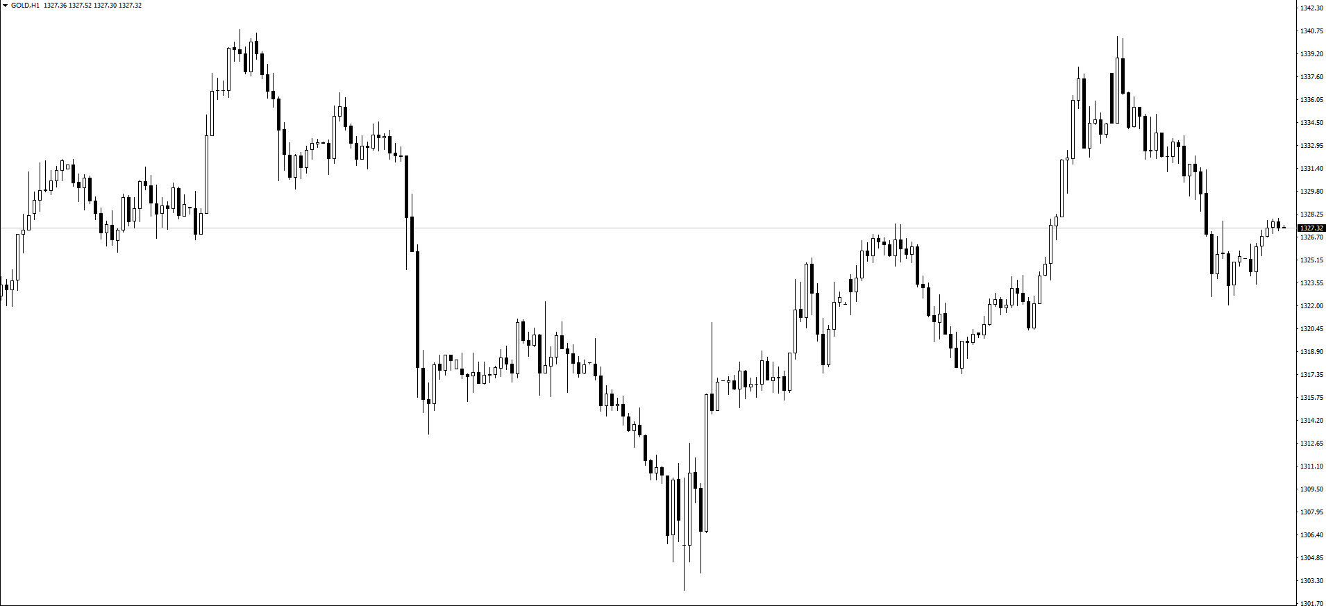 【黄金小时图】回顾前期行情,黄金最近两日暴涨暴跌,大涨之后再大幅下跌,上演过上车行情。而昨日走势上,黄金从1340美元一路下行至周三起涨点1322美元附近,跌幅高达18美元空间,日线收出大阴线。
