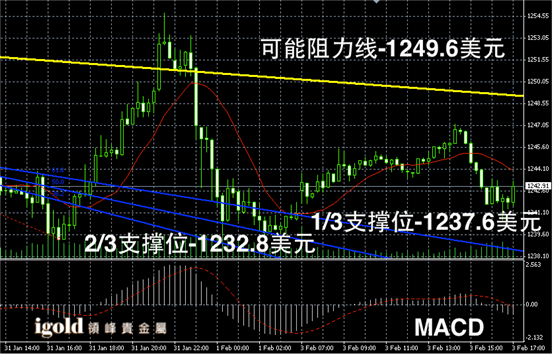 黄金阴阳烛录得离散率增加,前后阴阳烛间隔出现,短线MACD显示呈中性,后期黄金价格或整体在1240美元附近偏空整理。