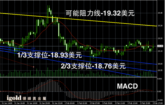 白银长线阴阳烛录得整体处于红色日平均移动线中位,短线MACD显示呈中性,后期白银价格或整体偏空,后期或在19.2美元附近围绕。