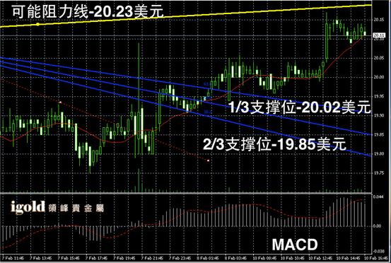白银阴阳烛录得反弹趋势不明显,柱体离散率加大,后期阳烛录得增加,短线MACD显示多头主导,后期白银价格或在21美元附近不断持稳。