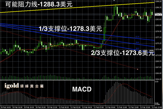黄金阴阳烛录得阳烛增多,不过后期整体处于红色日平均移动线中位,短线MACD显示弱势多头主导,后期金价或在1280美元附近不断持稳,若跌破则可能下行。