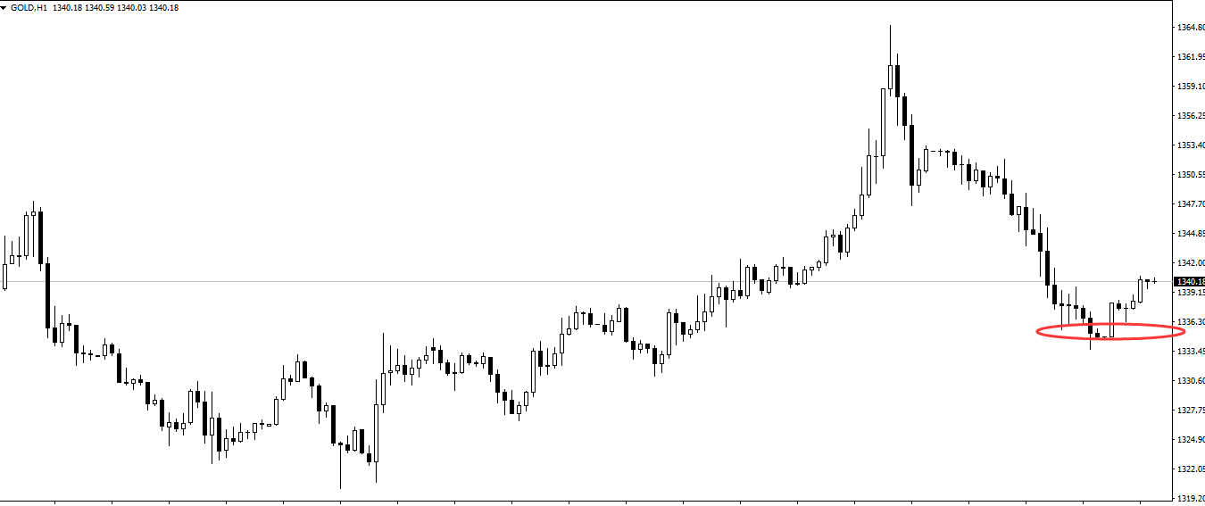 昨日市场受到贸易战、地缘政治等避险情绪的降温以及美联储对于收紧货币政策的影响,黄金日内走出了高位单边大幅回调下跌走势,几乎回吐前一个交易日的全部涨幅。最低运行至1333美元附近位置,日内跌幅高达20美元以上。