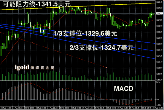 黄金阴阳烛录得反弹后,柱体收短,且高位聚焦明显。后期整体处于红色日平均移动线,短线MACD显示多头回落,金价短线后在1330以上不断持稳。