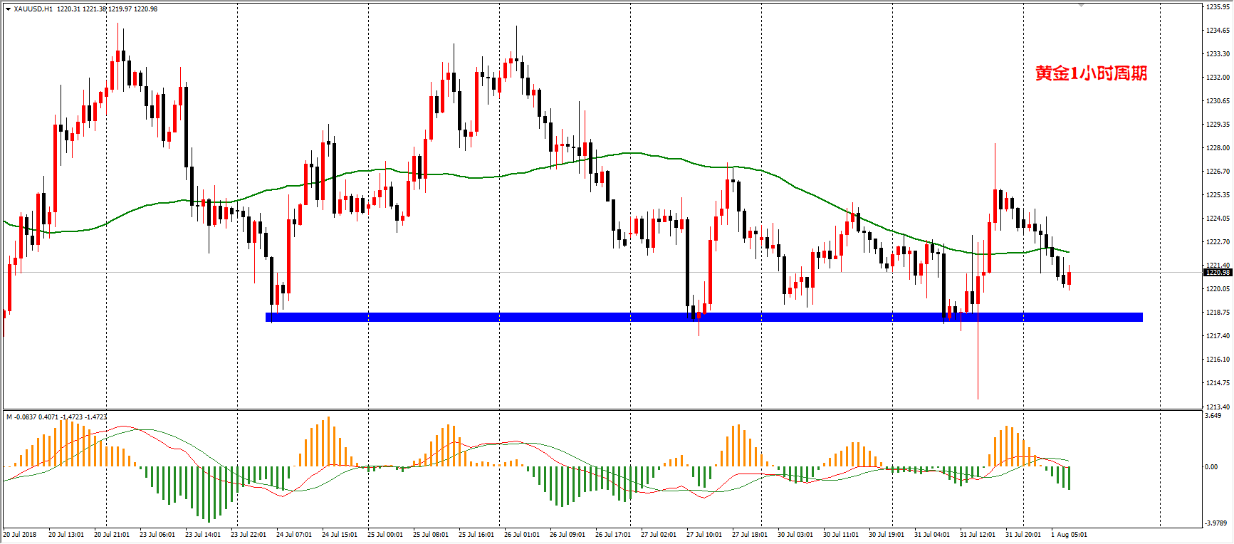 1220附近做多,止损1217,目标1224-1228。