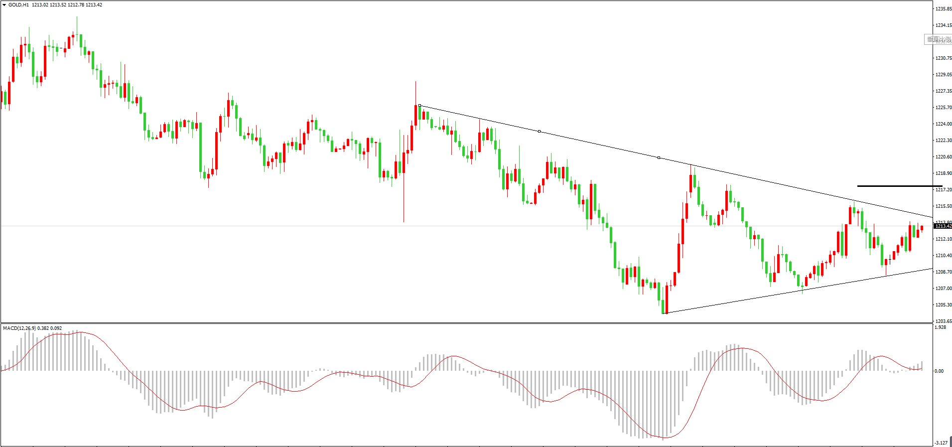 昨日黄金亚欧盘在美元下行以及避险情绪支撑下反弹至1216美元附近位置,随后美盘时刻多头不能持续,再次回落至起点位置,日内上演V型反转走势,日线小幅收涨。