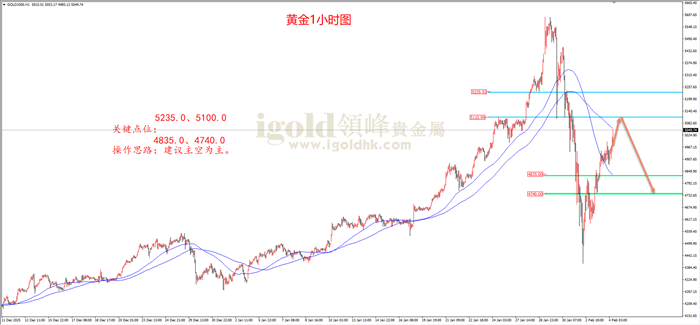进入非农周以来,价格在上周从5600一线大幅回落后,本周周初最低达到4400附近,随后买盘进场,价格出现上行。从整体上看,价格是一个典型的大跌后的反弹调整趋势,急跌后又急涨,节奏上属于反弹,整体较为震荡,寻找出较好的短期支撑和压力是操作的关键。上方第一压力5100,第二压力5235,下方第一支撑在4835,第二支撑4740。小非农数据时,根据数据公布的利多利空情况,结合支撑和压力位的破位情况,可以灵活选择方案对应操作,注意严格控制仓位风险。