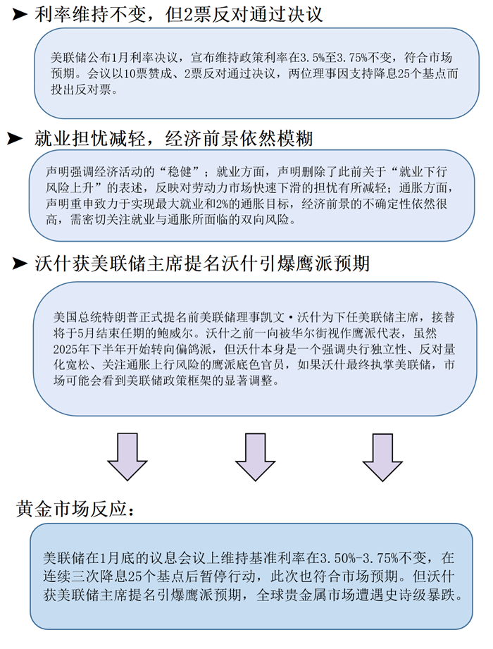 二、美国总统特朗普提名前美联储理事凯文·沃什为下一任美联储主席,缓解了市场对美联储独立性的担忧,也是导致贵金属价格跳水的核心原因。提名一位具有深厚货币政策背景、专业声誉的美联储前理事、拥有华尔街与白宫多重履历的资深经济人士,而非一位纯粹的政治盟友,这一举动本身向市场传递了一个信号,即美联储的政策决策框架和专业性可能得到维护,有助于缓解市场对政治力量过度干预美国货币政策的焦虑。鹰派预期直接推升了美元指数和美债名义收益率,投资者购买黄金和白银的成本上升,也打破了贵金属将取代美元成为全球储备货币的理论。