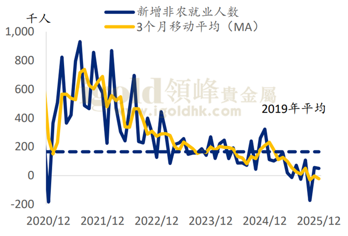 12月美国新增非农就业5.0万人(前值5.6万人),低于预期,前值被下调0.8万人,10月数据被下调6.8万人。近三月就业平均下降0.2万人,整体于低位,主要受10月表现拖累。